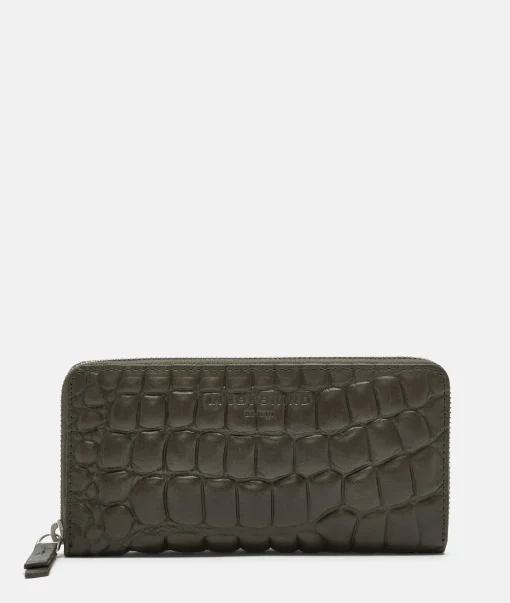 Iconic mock croc purse The long silhouette and elegant crocodile embossing on the leather make the Gigi a stylish accessory. The purse comes in a large format and has ample space for numerous cards. notes and small change without appearing bulky. Team with our LIEBESKIND BERLIN backpacks for an eye-catching combo in the city.